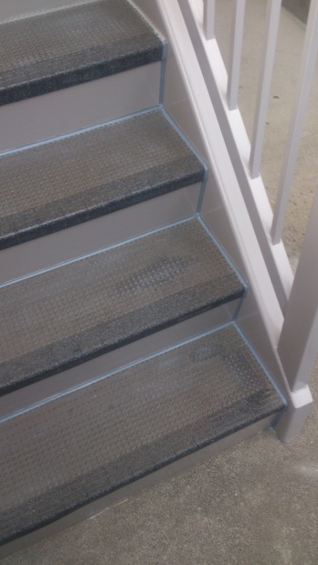 階段ササラ部分、踏み面、蹴上のコーキング。